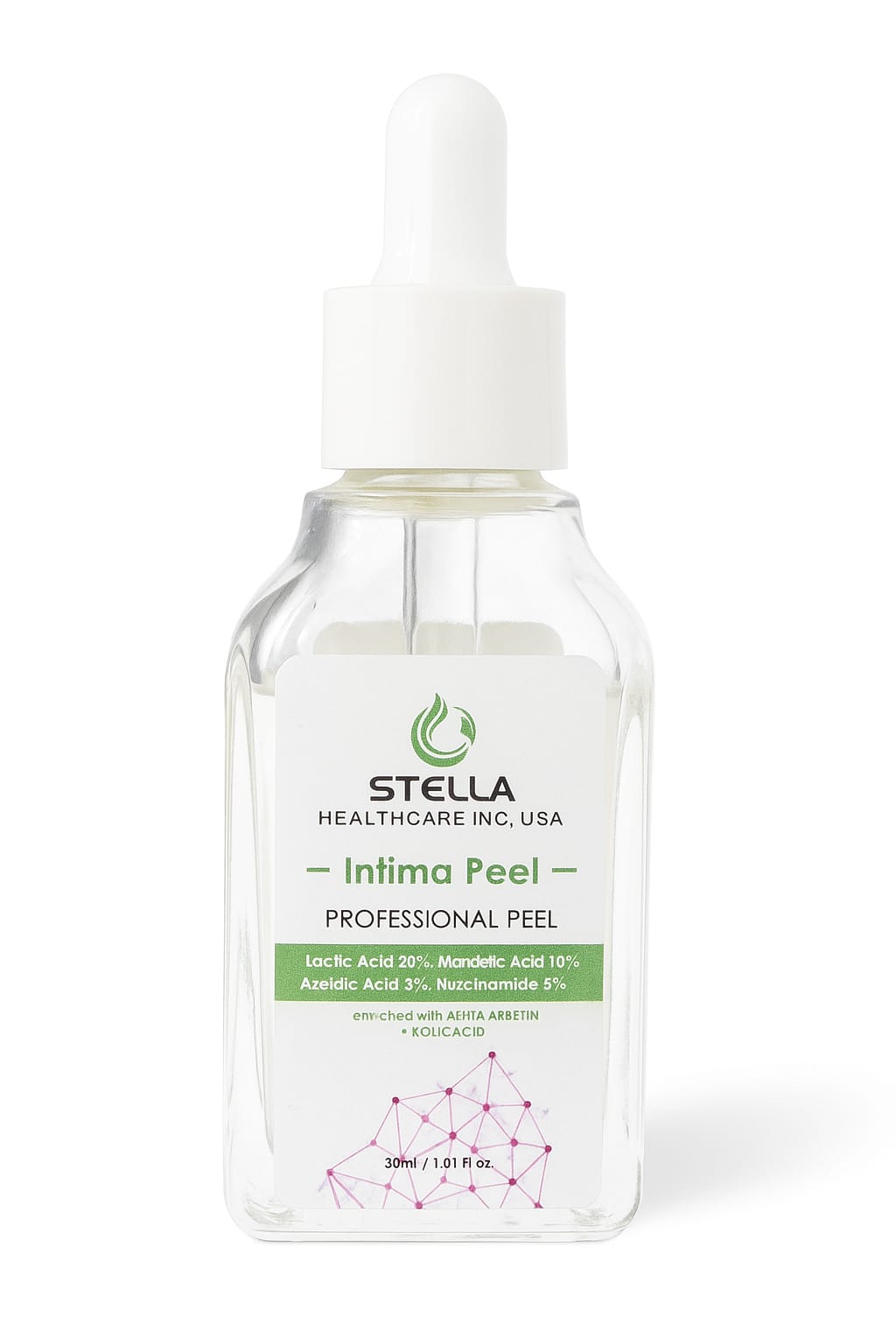 INTIMA PEEL a professional-grade multifunctional peel formulated for delicate skin zones. This advanced blend combines Lactic Acid (20%), Mandelic Acid (10%), Azelaic Acid (3%), and Niacinamide (5%) to refine texture, support tone improvement, and promote a smoother, more radiant appearance.